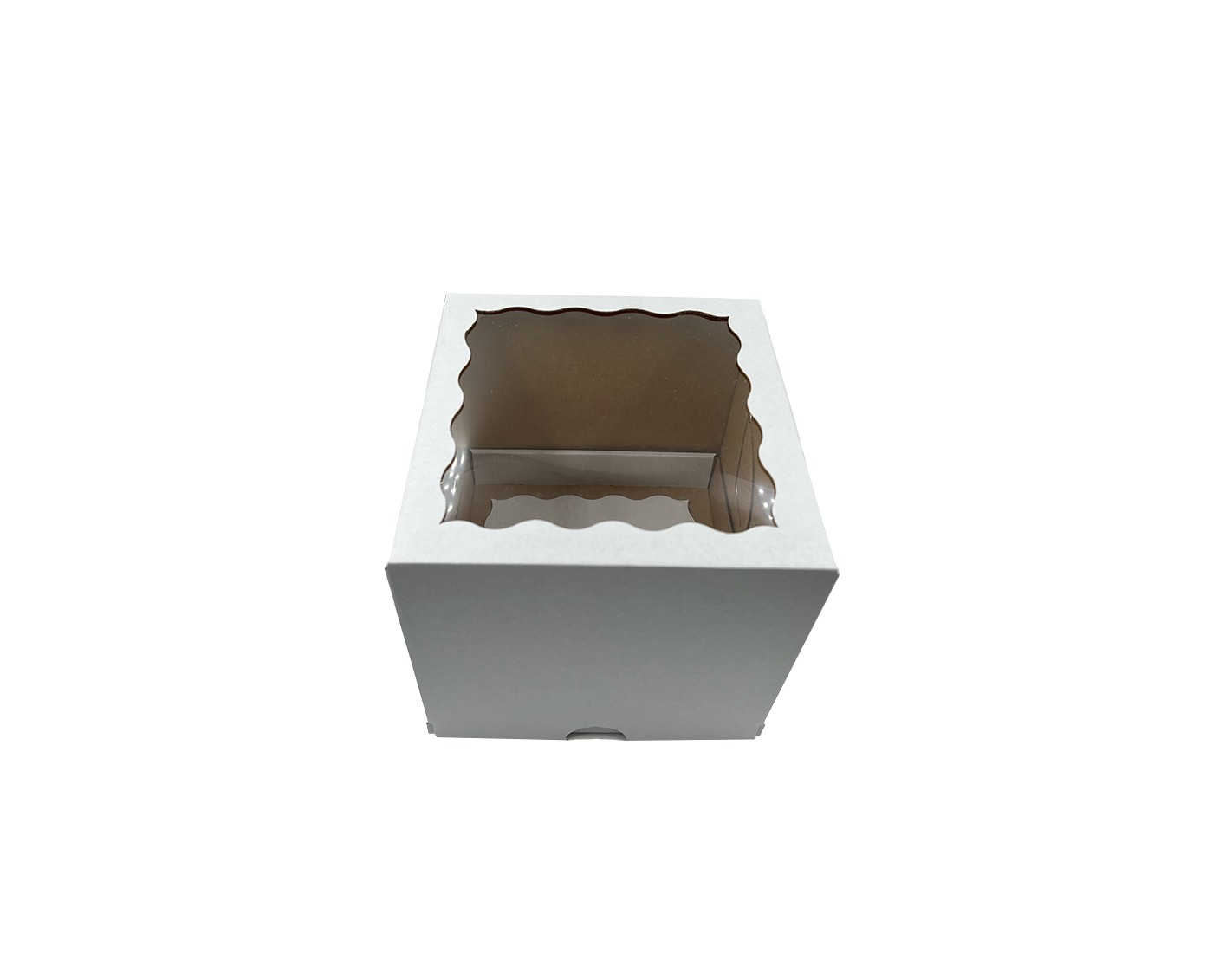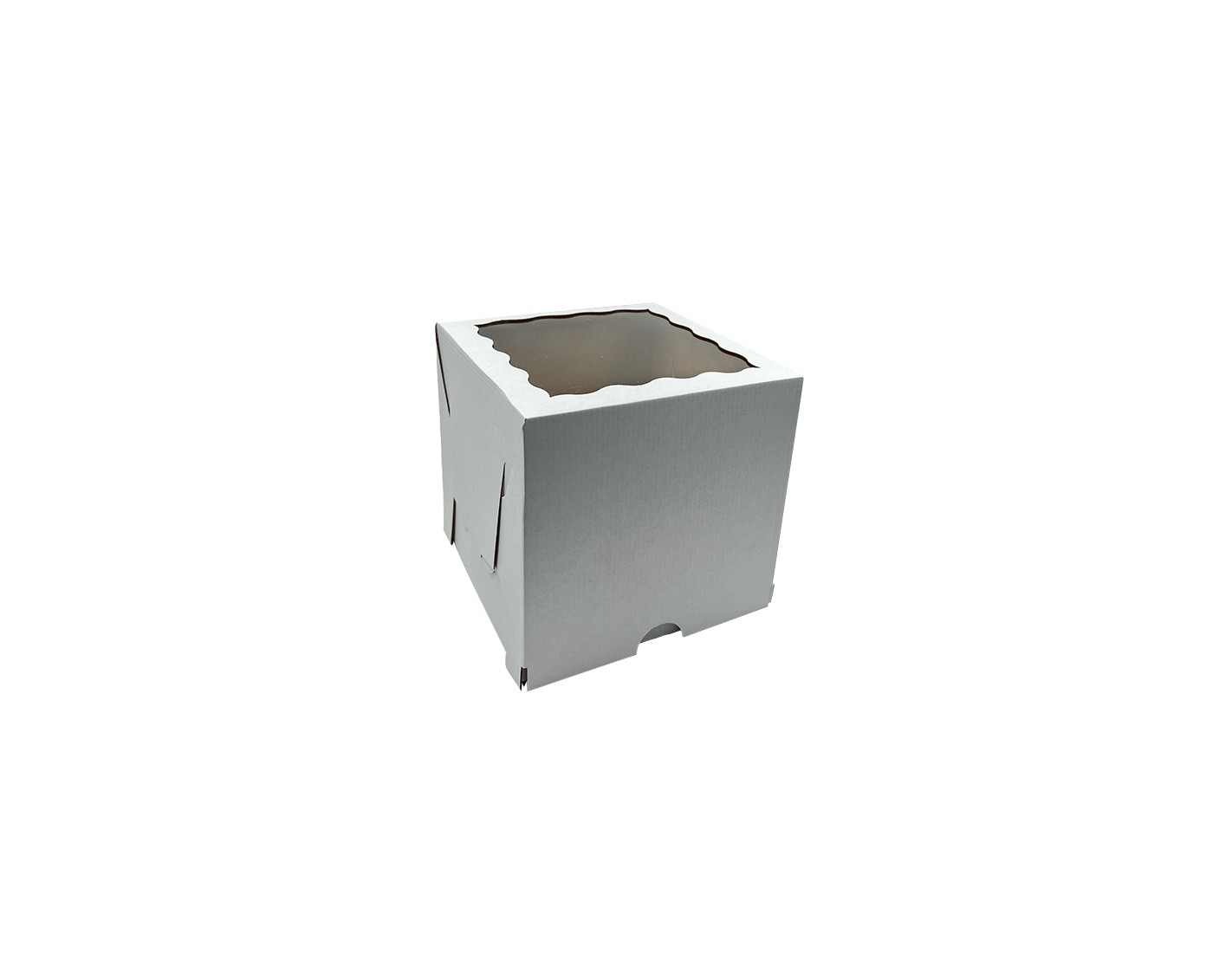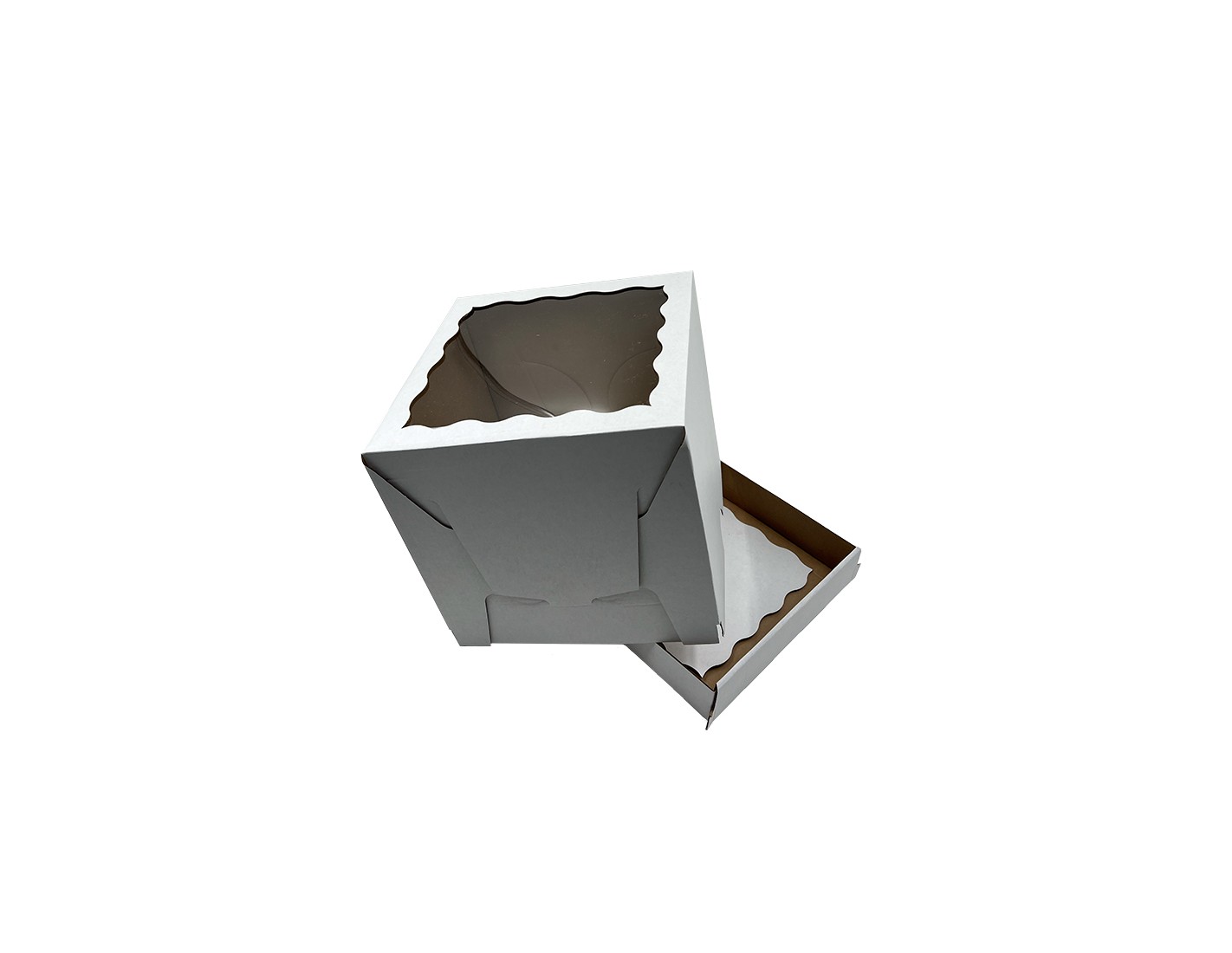 These are boxes for transportingcakes, pies, cobblers, doughnuts, cupcakes or single-crust sandwiches. Boxes are available in White/Brown or Brown/White paper. We offer your choice of imprint or logo on the boxes. The boxes can also be fitted with a PVC window to show the beautiful cake.