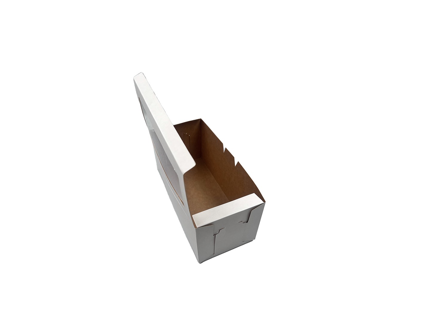 These are boxes for transportingcakes, pies, cobblers, doughnuts, cupcakes or single-crust sandwiches. Boxes are available in White/Brown, White/White or Brown/White paper. We offer your choice of imprint or logo on the boxes. The boxes can also be fitted with a PVC window to show the beautiful cake.