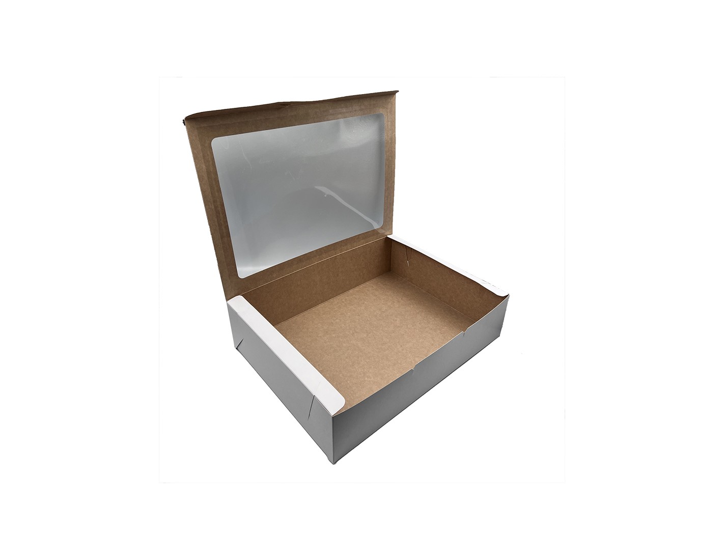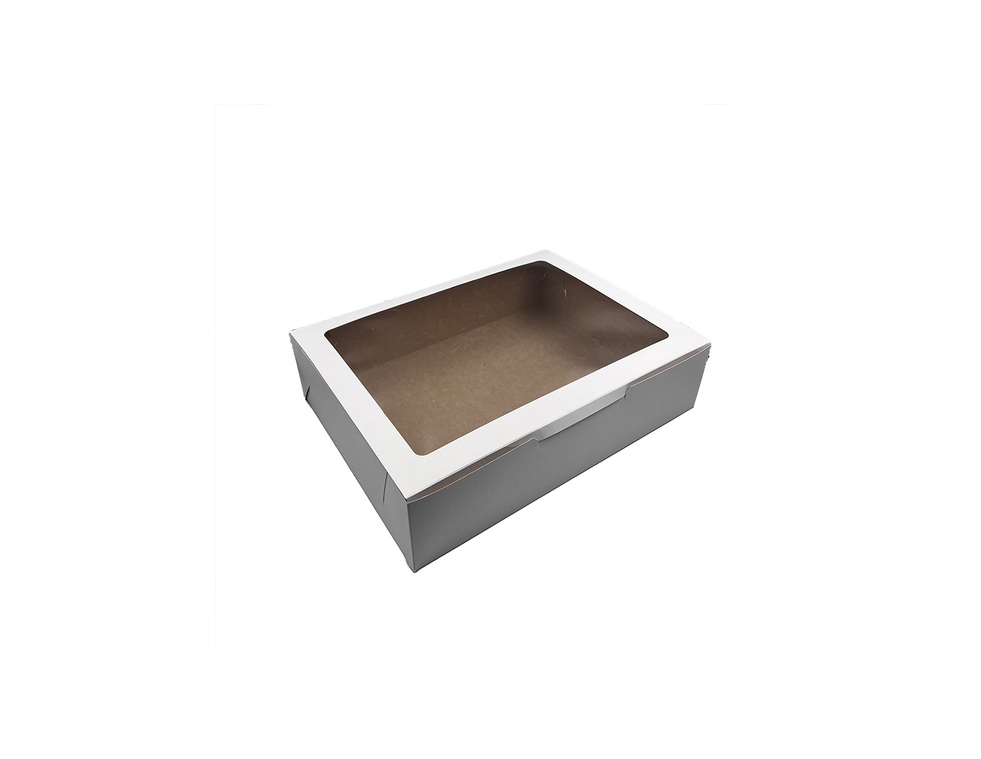 These are boxes for transportingcakes, pies, cobblers, doughnuts, cupcakes or single-crust sandwiches. Boxes are available in White/Brown, White/White or Brown/White paper. We offer your choice of imprint or logo on the boxes. The boxes can also be fitted with a PVC window to show the beautiful cake.