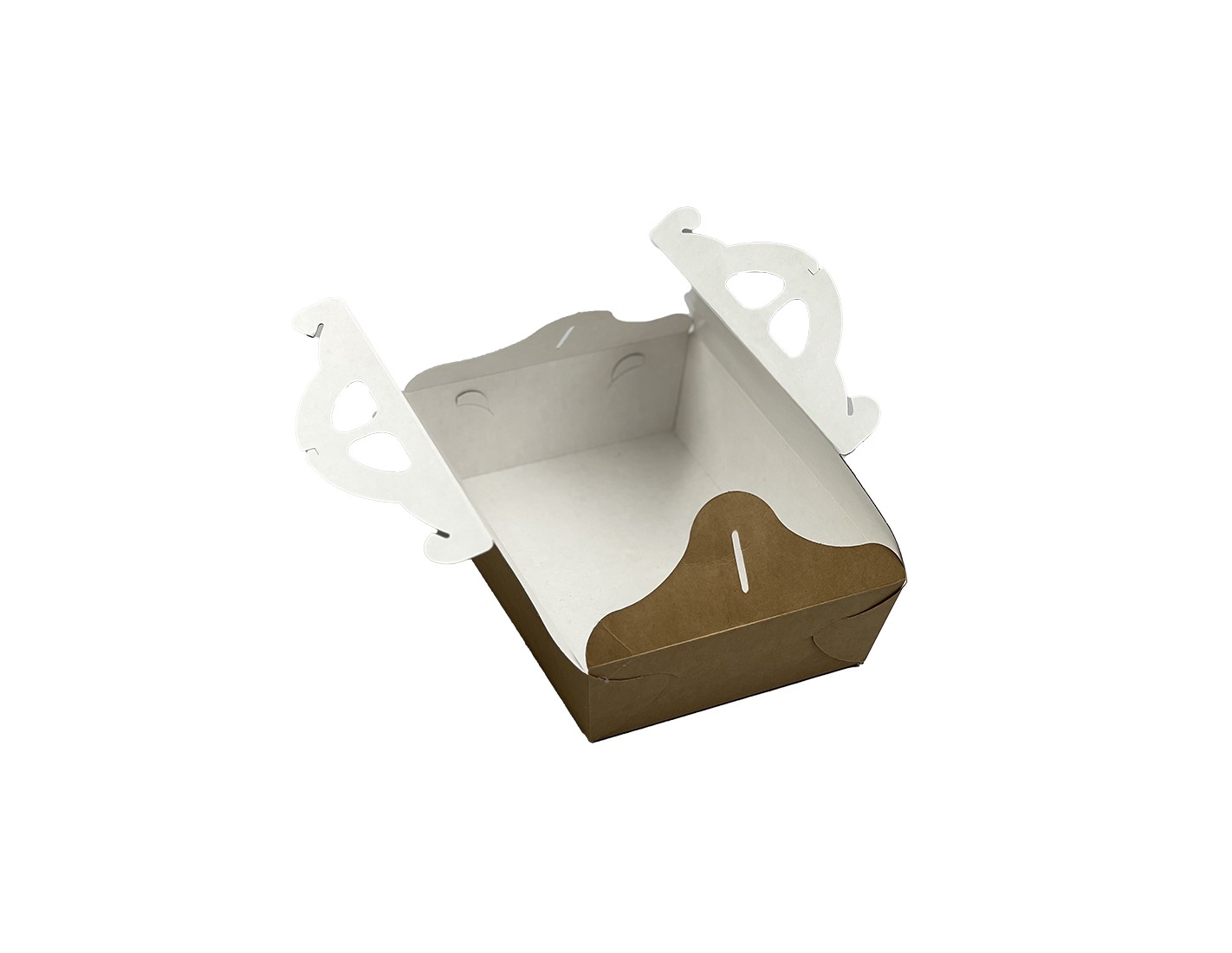 The Tulip cardboard box is an aesthetic and functional solution for storing and transporting cakes and pastries. The double cardboard colour - warm brown and clean, glossy white - gives the box a luxurious and versatile design (you choose which flap will be the outer flap), while the unique Tulip mechanism allows the box's 'leaves' to unfold in four directions for easy access to the cakes and pastries. A convenient handle ensures easy carrying and the box can hold up to 2 kg.